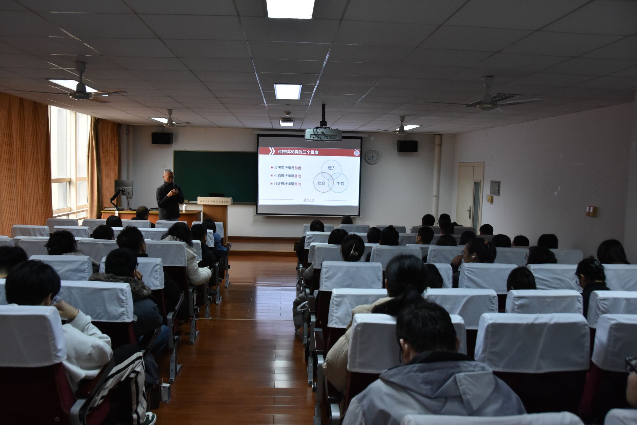沈教授从经济、生态、社会三个维度,以及国土经济、产业经济、绿色生态、社会健康可持续四个方面,详细阐述了未来城市可持续发展存在的问题,提出了绿色生态-新质零碳建筑、国土经济-新质城市更新、产城融合-新质产业集群、社会健康-生命安全建筑等四位一体的城市可持续发展战略。报告结束后,沈教授与学院教师进行了深入的互动交流。