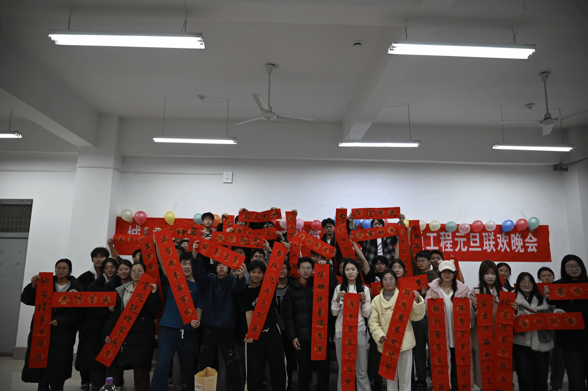 交通工程学生在南山书院301张挂横幅、紧锣密鼓、喜气洋洋,在这岁序更替的美好时刻,一场充满活力与温暖的元旦联欢会热闹开启。