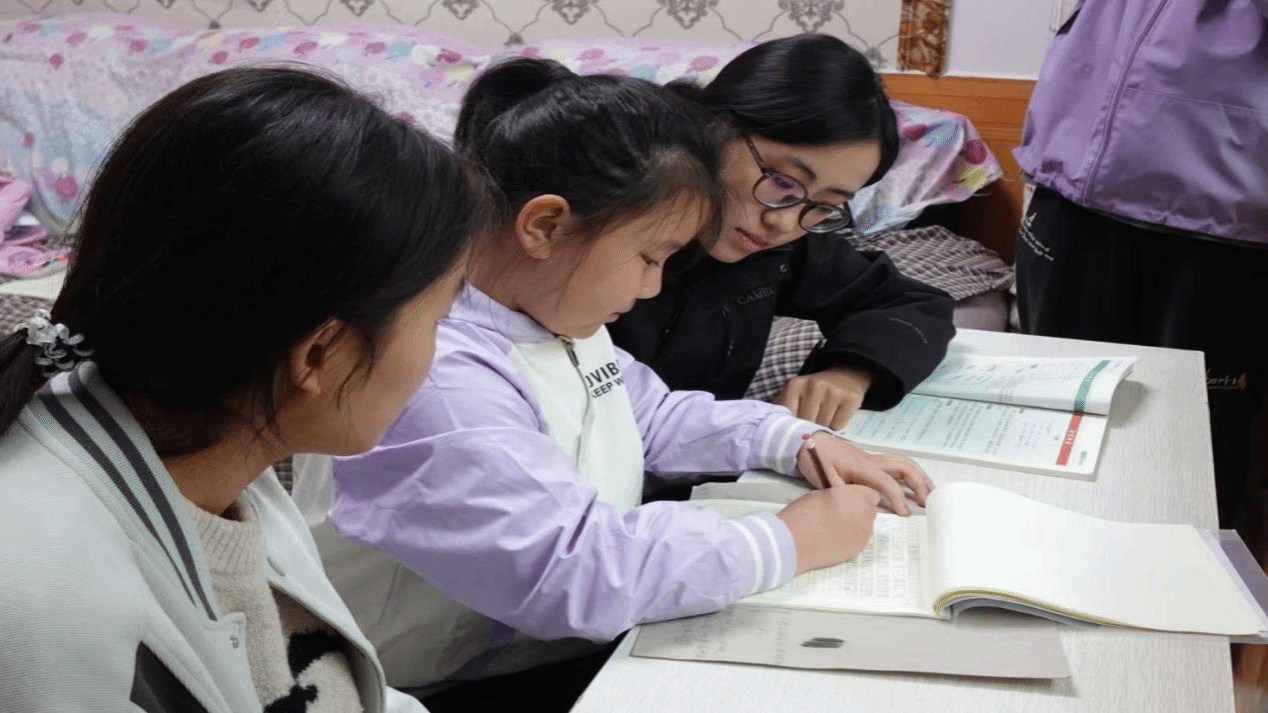 志愿者通过分析不同孩子们的学习情况进行一对一教学,逐题解决他们的疑惑,耐心解答他们在生活与学习中遇到的问题。在学习之余,志愿者还教孩子们做手工,真正做到“以爱为引”,引导他们增强自身的动手能力,呵护他们快乐成长。孩子们获取了知识,明确了前行的方向。